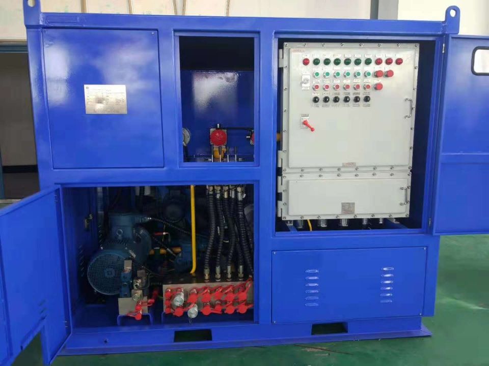 液壓站是由液壓泵、驅(qū)動用電動機、油箱、方向閥、節(jié)流閥、溢流閥等構成的液壓源裝置或包括控制閥在內(nèi)的液壓裝置。按驅(qū)動裝置要求的流向、壓力和流量供油,適用于驅(qū)動裝置與液壓站分離的各種機械上,將液壓站與驅(qū)動裝置(油缸或馬達)用油管相連,液壓系統(tǒng)即可實現(xiàn)各種規(guī)定的動作。液壓站一般是為大中型工業(yè)生產(chǎn)的機械運行提供潤滑、動力的機電裝置。使用液壓系統(tǒng)是由于液壓系統(tǒng)在動力傳遞中具有用途廣、效率高和構造簡單